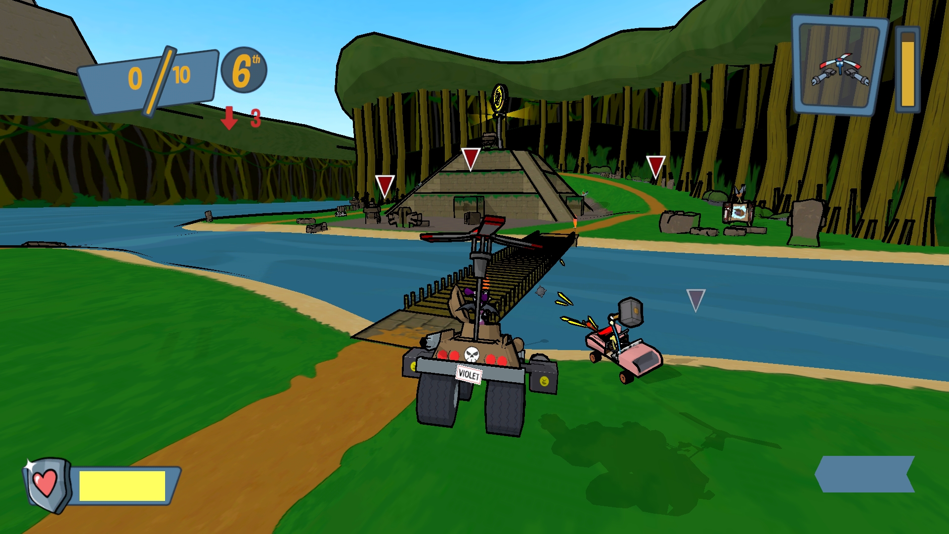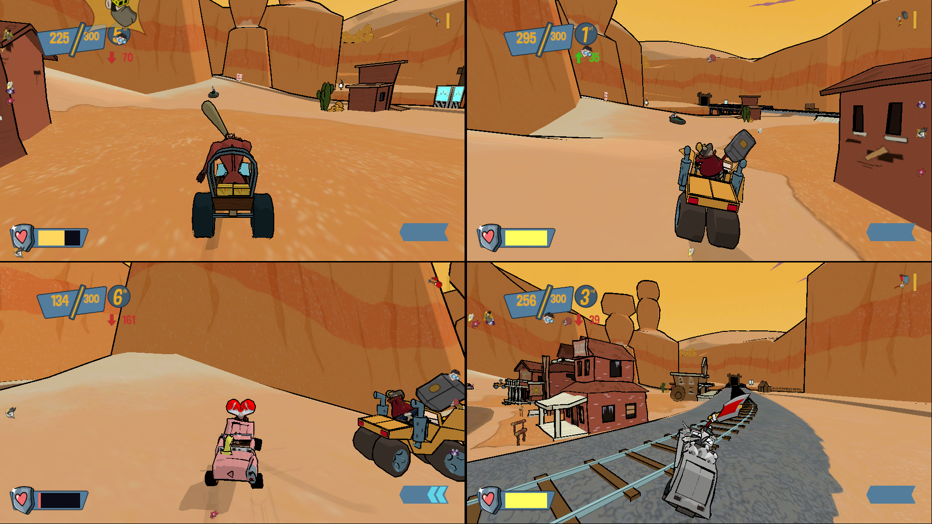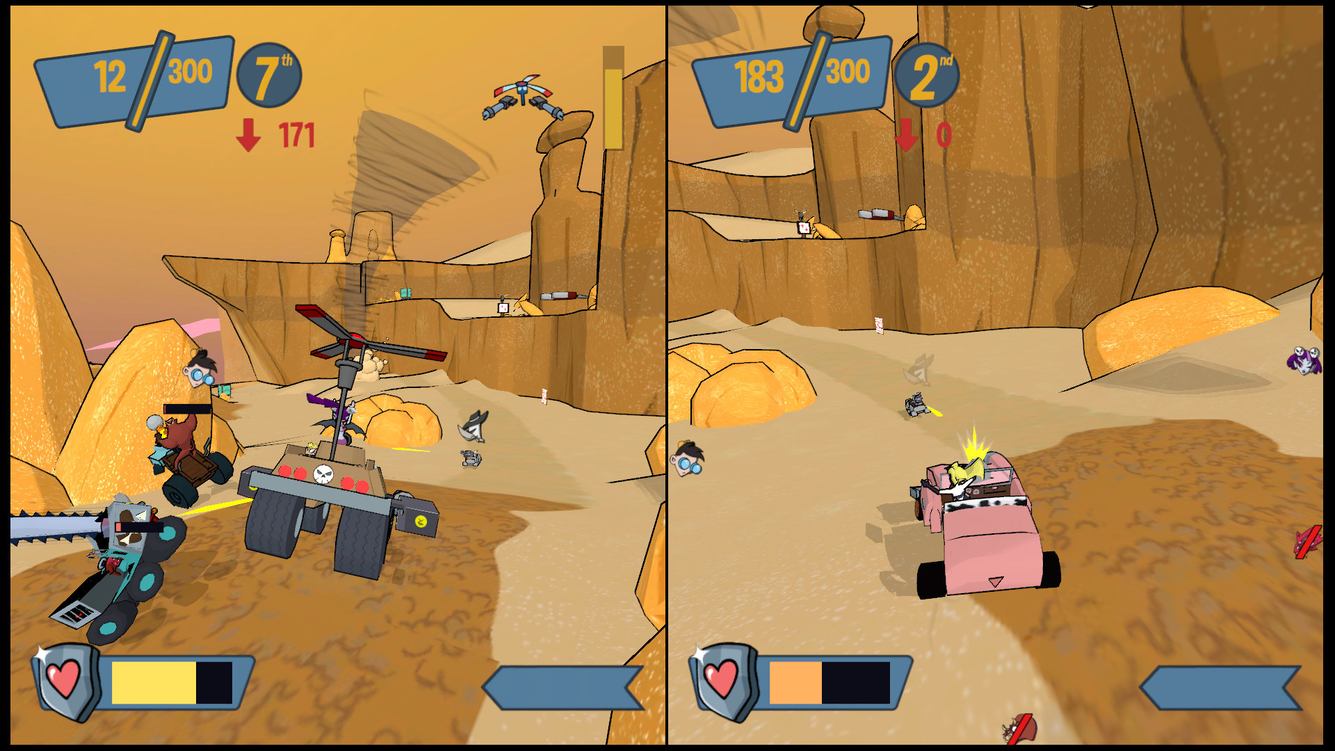 Управляйте лучшими в мире мультяшными гонщиками и разгромите своих друзей, используя разное оружие и опасности на арене!