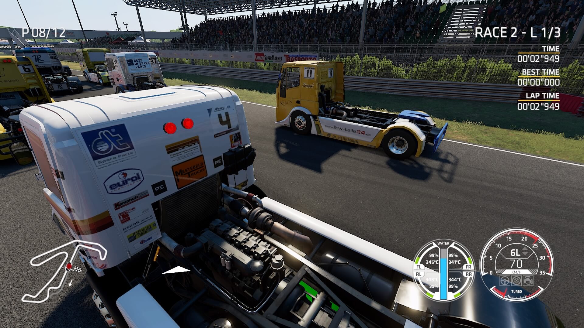 В ETRC вам придётся следить за температурой тормозов, чтобы они не перегрелись — как в настоящем гоночном грузовике. Также не забывайте про его вес на поворотах, проверяйте износ шин и придумывайте лучшие тактики для обгона.