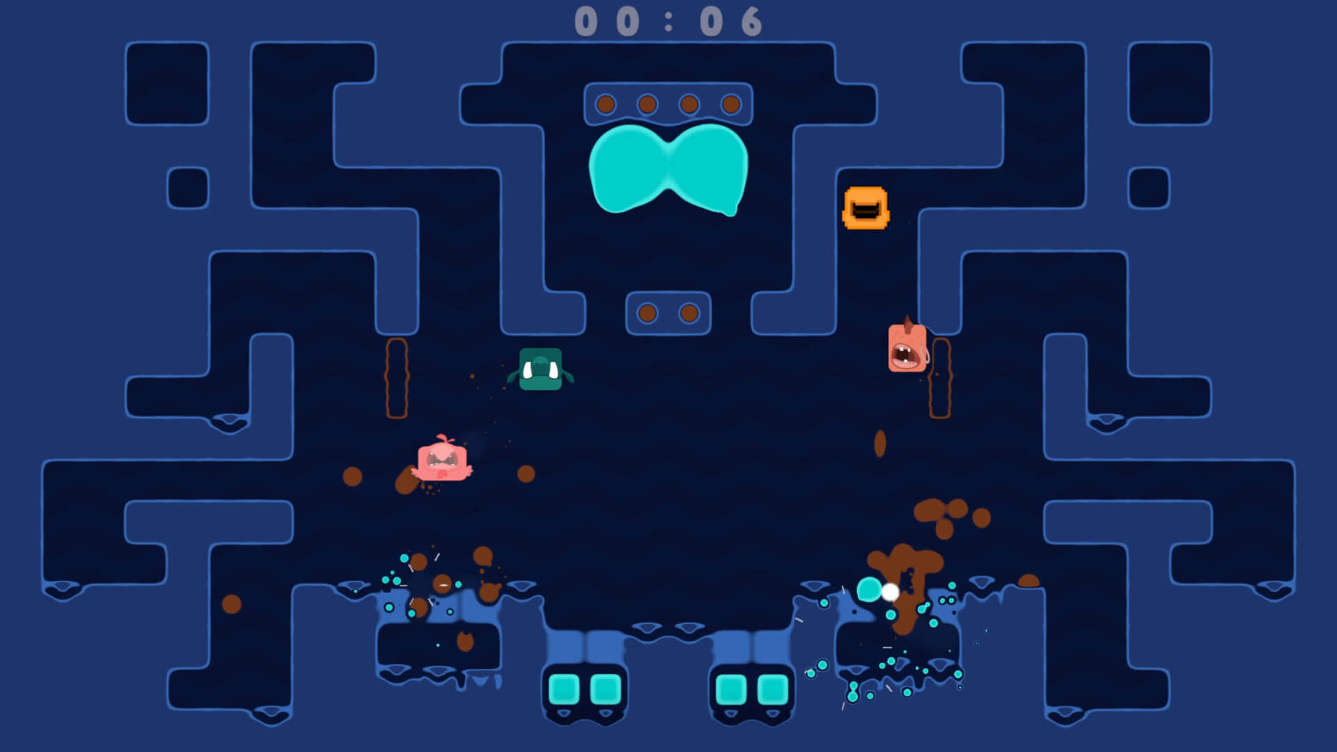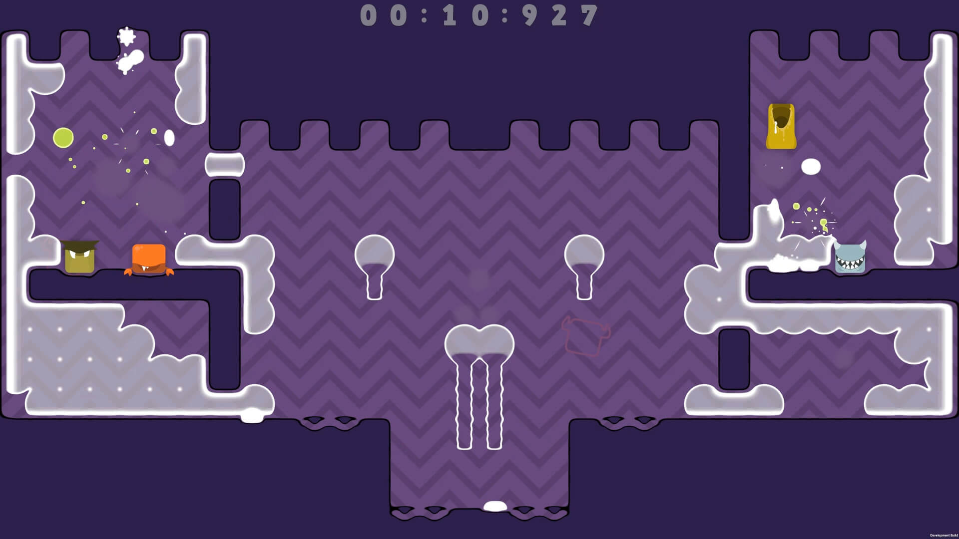 Spitlings – хаотичная аркада для одного до четырех игроков. Вы управляете титульными Splitlings, очаровательными прямоугольными существами с зубами, которые они могут плевать на пузырьки или использовать, чтобы прыгать!